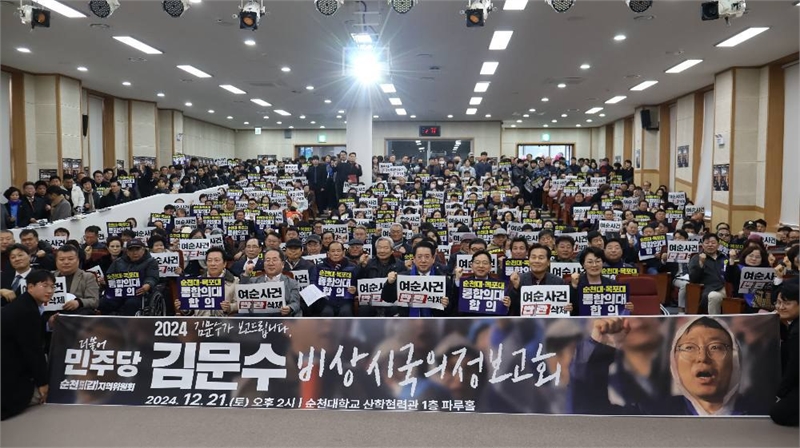 더불어민주당 김문수 국회의원(전남 순천광양곡성구례갑)이 12월 21일 국립순천대학교 산학협력관 파루홀에서 열린 ‘2024 비상시국 의정보고회’를 대성황리에 마쳤다.
